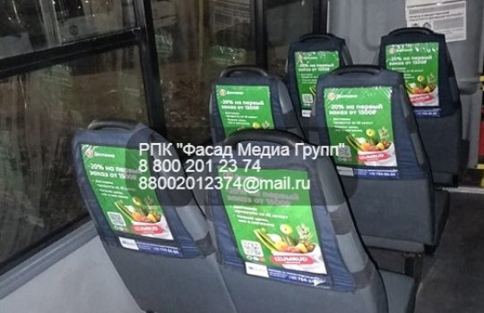 Размещение рекламы на подголовниках в маршрутках направлено на максимальный охват пассажиров транспортного средства. Рекламное объявление хорошо заметно, его можно внимательно изучить, считать qr-код, записать контакты и адрес рекламодателя
