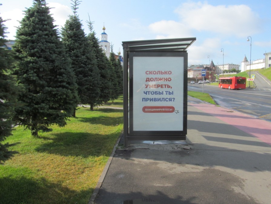 Примеры рекламы на остановках в Казани представлены на фото: